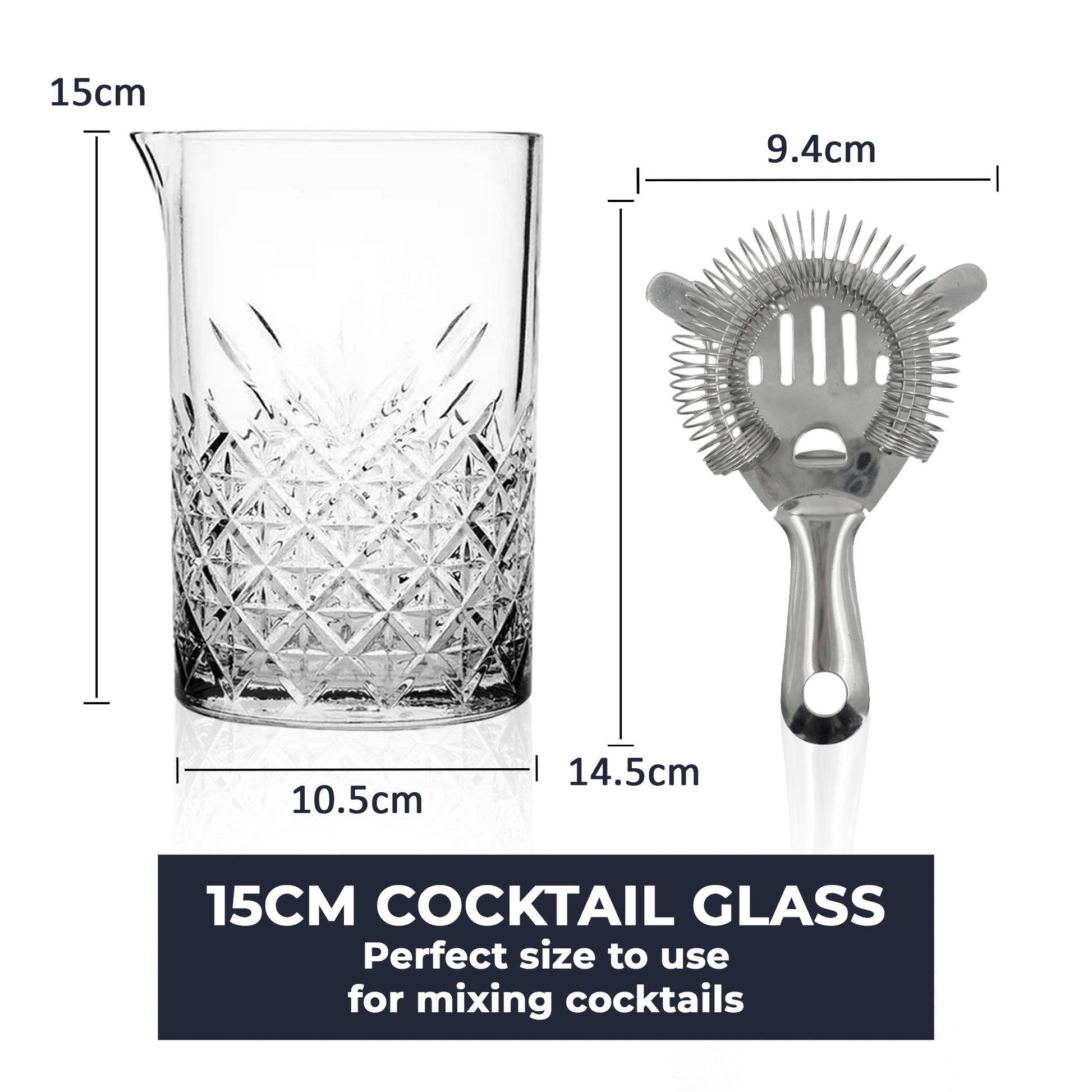 Both the mixing glass and strainer are dishwasher-safe, making clean-up quick and keeping your bar setup looking polished.