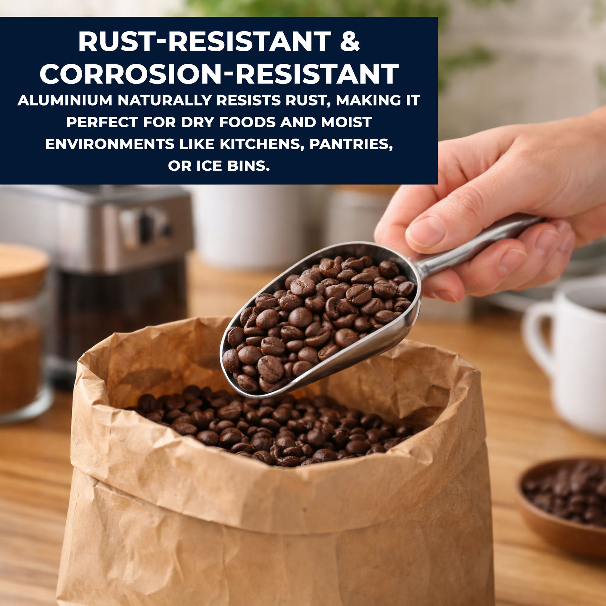 A durable metal scoop offers several practical advantages for everyday kitchen and household tasks.
